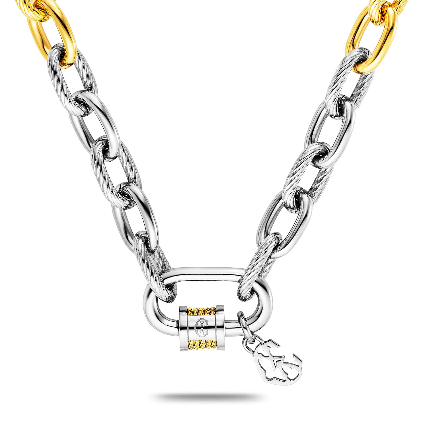 La colección ofrece tres diseños: un collar con una cadena de cable con bucles de cable trenzado alternados, disponible en varias longitudes; una pulsera de eslabones a juego sujeta con un cierre de langosta; y una única hebra de cable trenzado con extremos en contraste. La línea, disponible en una mezcla de metales clásicos, encarna el estilo vanguardista y el encanto utilitario.