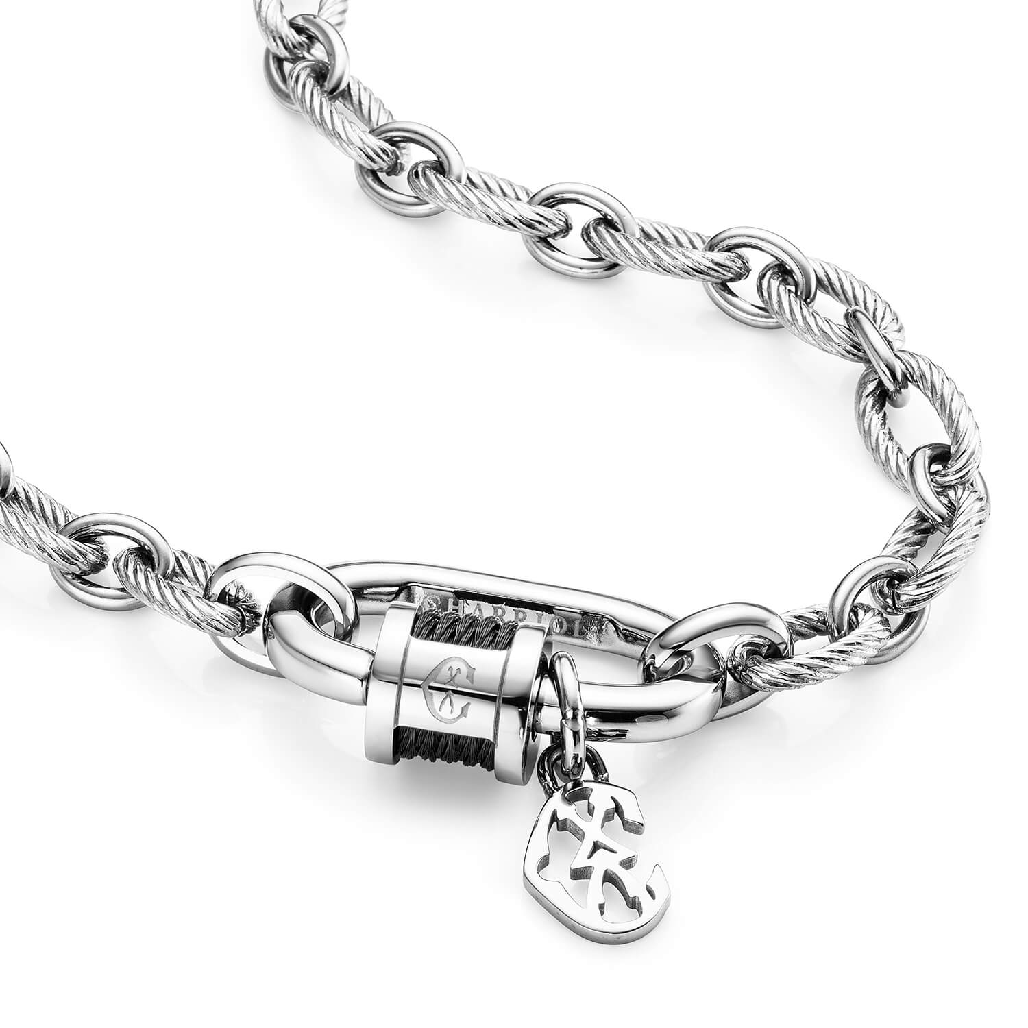 La colección ofrece tres diseños: un collar con una cadena de cable con bucles de cable trenzado alternados, disponible en varias longitudes; una pulsera de eslabones a juego sujeta con un cierre de langosta; y una única hebra de cable trenzado con extremos en contraste. La línea, disponible en una mezcla de metales clásicos, encarna el estilo vanguardista y el encanto utilitario.