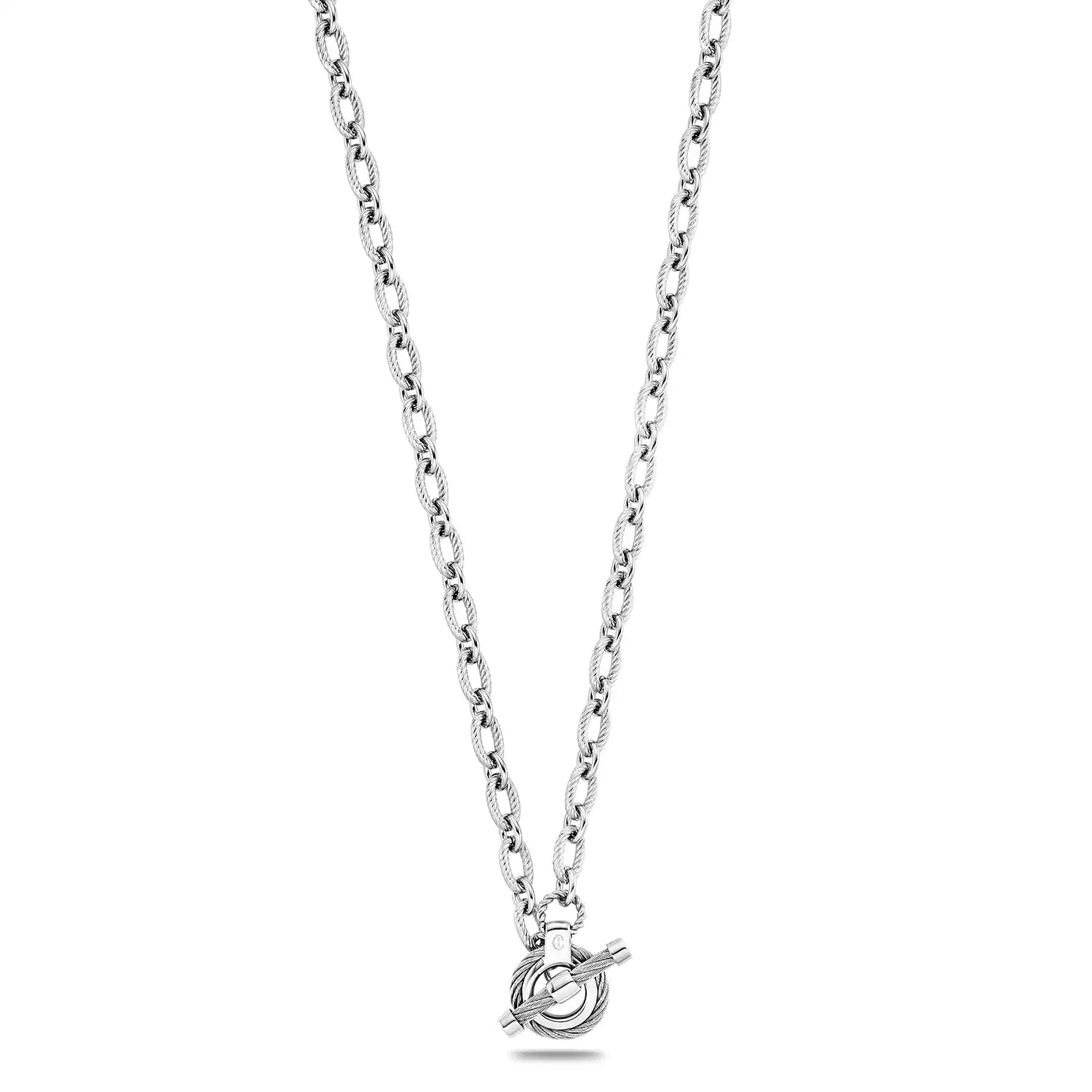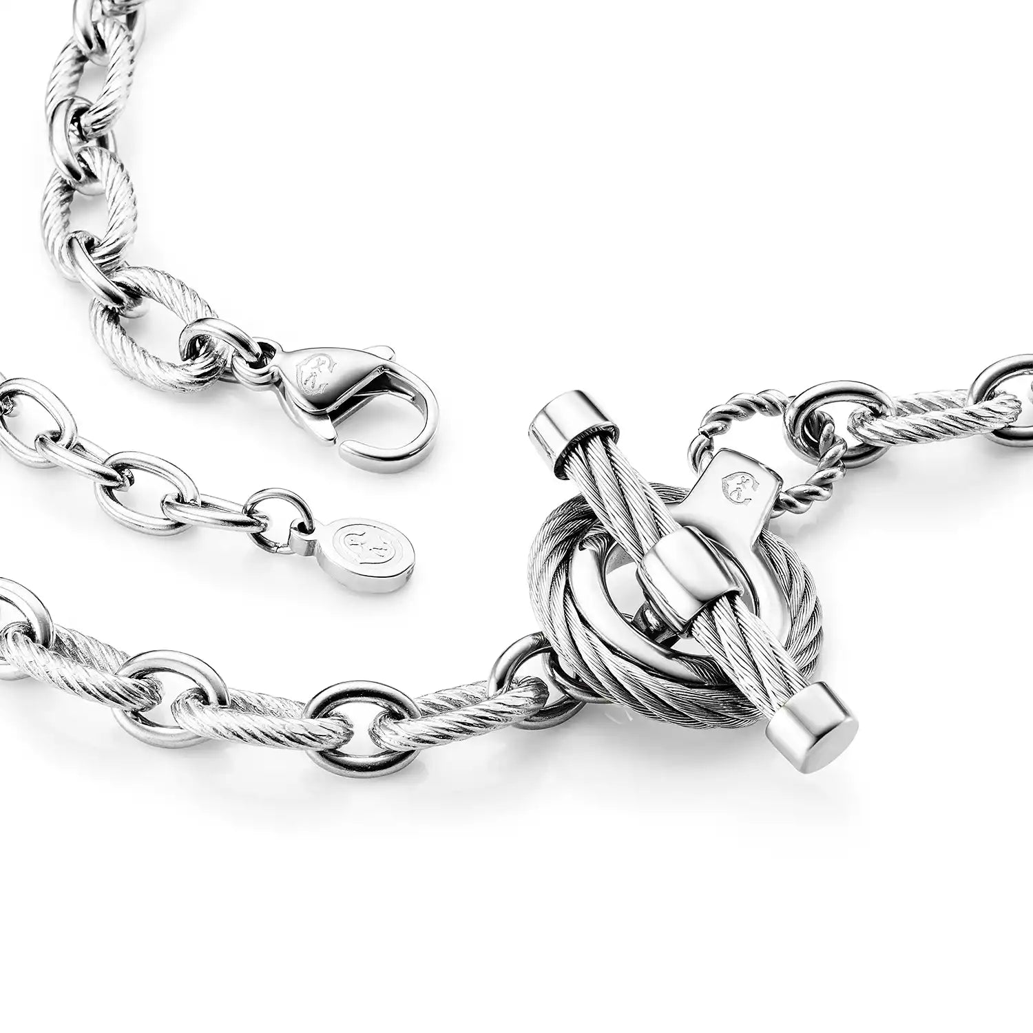 Esta joya forma parte de la nueva colección St-Tropez™ Mariner. En el corazón de esta colección de joyas se encuentra el motivo de la cadena, una propuesta inspirada que enriquece el universo en torno al exitoso reloj St-Tropez™ de Charriol. Organizada en tres líneas, la cadena se reinterpreta a través de una mezcla de metales, motivos y charms, en pulseras, pendientes, anillos, collares largos y cortos, todos ellos diseñados para ser mezclados y combinados. El resultado es un conjunto moderno, hecho a medida, que evoca las vistas del puerto, los sonidos y la emoción de la estación balnearia francesa de Saint-Tropez.